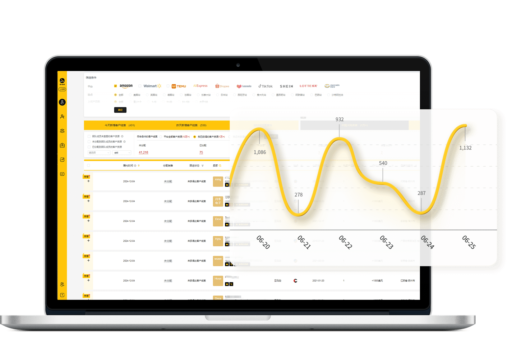 行业独家,每日源源不断提供最新一手跨境电商多平台(已支持亚马逊、沃尔玛、Temu)最新卖家信息。